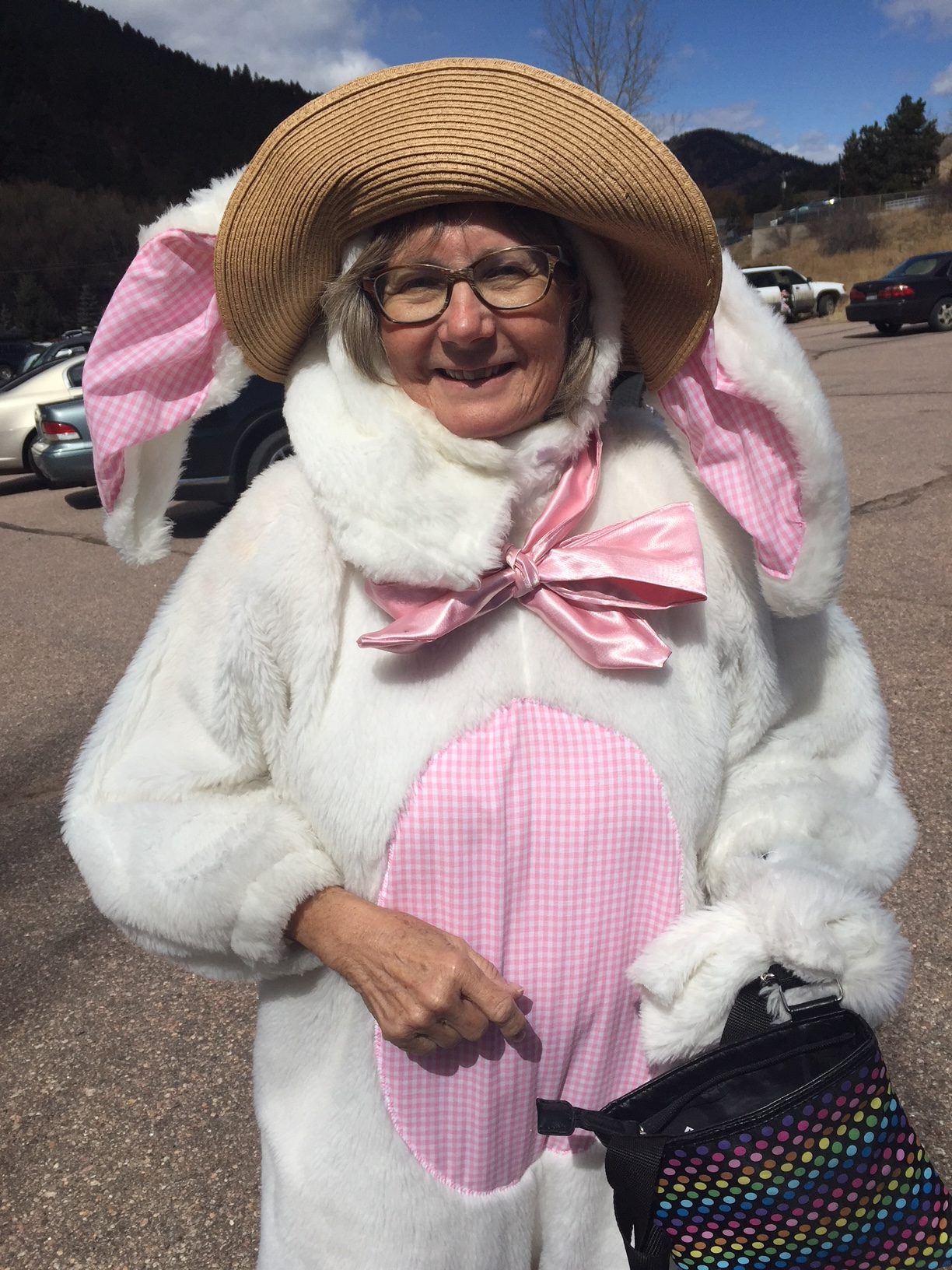 Yep, it was time for me to jump back in the bunny suit and hug lots of “little visitors” plus their parents, splashing them with Jesus’ love and offering prayers to many. Loved the big smiles when I stuck “He is Risen” stickers on dozens. Really great weather, no snow on the ground. PTL!
